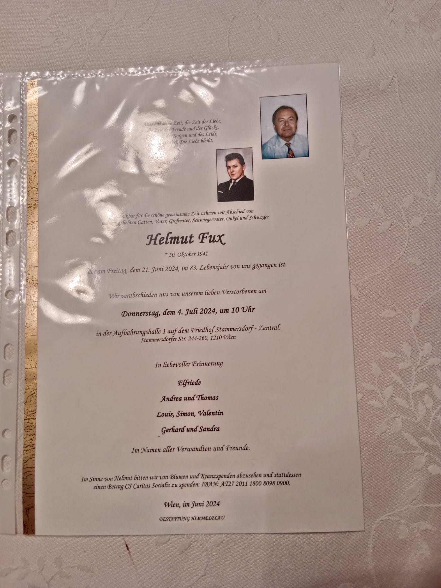 Im Juni musste der AK Nord Wien jedoch einen schweren Verlust beklagen. Unser Kassier und Chronist des Vereines, Helmut Fux, verstarb nach langer Krankheit: Parte Helmut